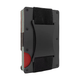 Minimalistički aluminijski novčanik u metalik crnoj boji s crnom metalnom kopčom za novac.