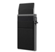 Minimalistički muški novčanik za kartice s iskočnim držačem. Izrađen od aluminija i karbona, dimenzija 10x7cm. Ima RFID zaštitu od zlouporabe kartice i omogućuje sigurnu pohranu. Elegantan dizajn u crnoj boji za modernog muškarca.