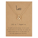Ogrlica s privjeskom astrološkog znaka lava izrađena od legure cinka s posrebrenim premazom. Podesivo zatvaranje omogućuje duljinu od 45-50 cm. Priložena je darovna kartica s opisom znaka, što je čini savršenim poklonom.