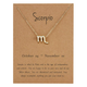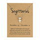 Ogrlica s privjeskom astrološkog znaka Strijelca izrađena od legure cinka s pozlaćenim premazom. Podesivo zatvaranje omogućuje duljinu od 45-50 cm. Priložena je darovna kartica s opisom znaka, što je čini savršenim poklonom.