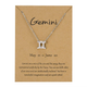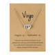 Ogrlica s privjeskom astrološkog znaka Djevica, izrađena od legure cinka s pozlaćenim premazom. Podesivo zatvaranje omogućuje duljinu od 45-50 cm. Priložena je darovna kartica s opisom znaka, što je čini savršenim poklonom.